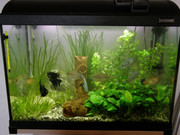 Риби:среден размер трихогастери-10 бр.скаларии-5 броя,анциструси-няколко малки и един два средни по размер,още 4-5 малки рибки.