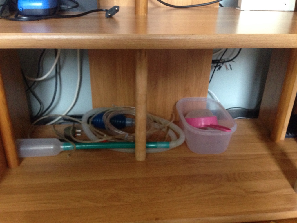 преди време си купих бюро за ТВ, но реших да сложа 100л аквариум и да премествя ТВто другаде, преди да сложа телевизора подложих 6 допълнителни крака под плоскостите.