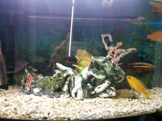 Ами нямам по голям аквариум този така ми го подариха...а защо трябва да е на равно покритие изцяло?Тои отстрани старчи съвсем малко.Ако сложа още камъни по големи за да се крият рибите пространството ще стане още по малко...Също така сомът е доста едричак и незнам какво да го правя.
