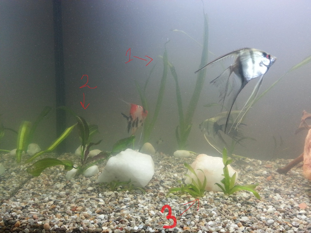 Аз пак да добавя! Златни не се отглеждат със Скаларии!  Имат различни изисквания за живот.  Прочети за всяка една рибка която имашкакви са изискванията им и не ги смесвай така безразборно!