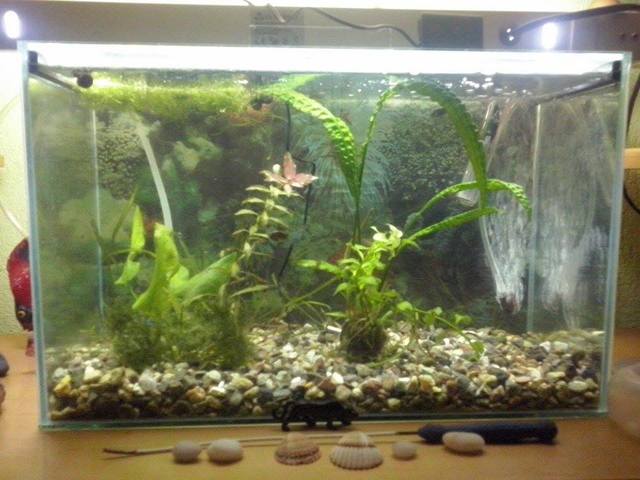 Здравейте колеги - акваристи. Искам да ви покажа първият ми досега скаридарник и да ви помоля за съвети ,ако нещо му липсва.Аквариумът е 24 литра в него отглеждам 16 скариди Ред Чери 1 Анцитрус ,Меланий и Планобриси ,които постоянно се множат и не знам точният им брой.Растенията са Криптокорина, мъх и валиснерия която нещо не вирее... Ще съм благодарен за всеки един съвет . Благодаря ви !