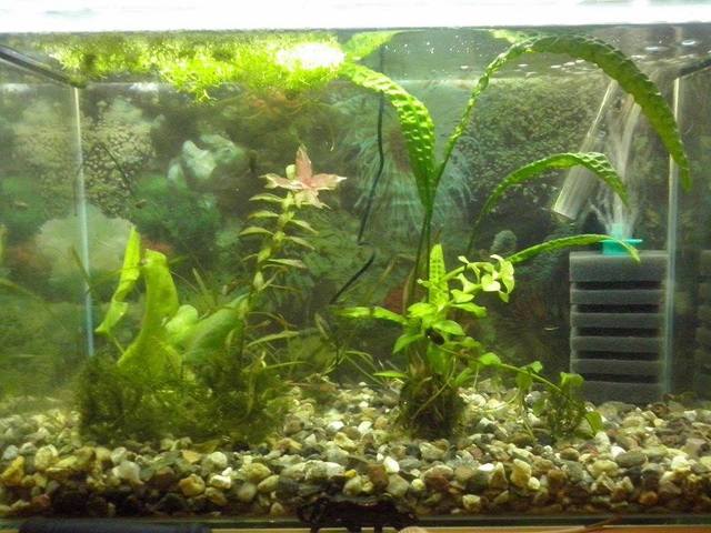 За филтрацията, колегата мисля е прав. Може и с гъбата разбира се, но определено с вътрешен филтър ще е по-добре. Аз преди няколко дни сложих в един 10 литров аквариум вътрешно филтърче на sunsun HJ-111B (Щото аератора е толкова тих, че ще разглоби шкафа). Въобще няма място за сравнение с гъбата. Много добра механична филтрация (което за аквариум с тези размери е много важно). А кефа от абсолютно безшумната работа на вътрешния филтър, изобщо няма да го коментирам  *YAHOO*