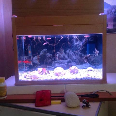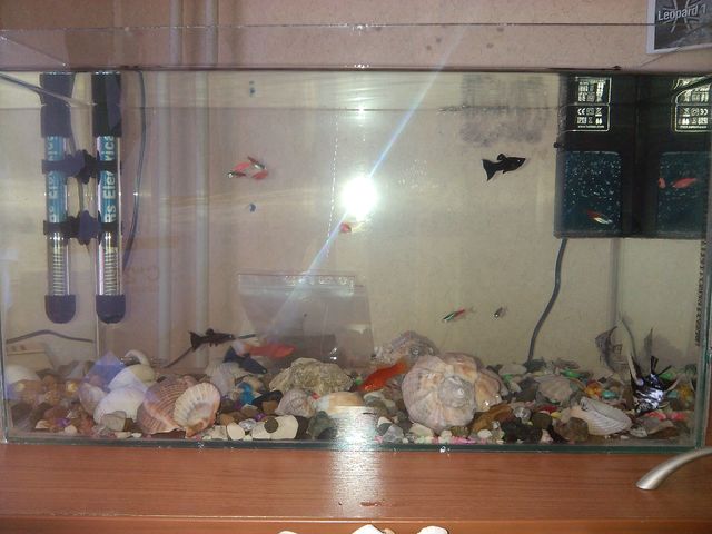 Тъй като стартирах аквата без да се интересувам от каквото и да било(моя грешка) първо взех рибките, после почнах да чета и да вървя по стъпките за сладководен аквариум..и така останаха скаларийте и хелера, но ако някой е от София може да се срещтнем да му ги подаря, заедно с хелера, иначе в момента има даньота, неони барбуси и 2 сомчета всичките са на ято по 6 без сомчетата, в момента филтъра е Hailea rp-200, дават го на максимум 200 литра на час, но четох по форума че това е дебитът му без филтъра, върши работа, но мисля да взема същият като марка но rp-400 дават го от 200 до 400 литра, но с оглед че аквата ми е пренаселена смятам че ще е добре?: )