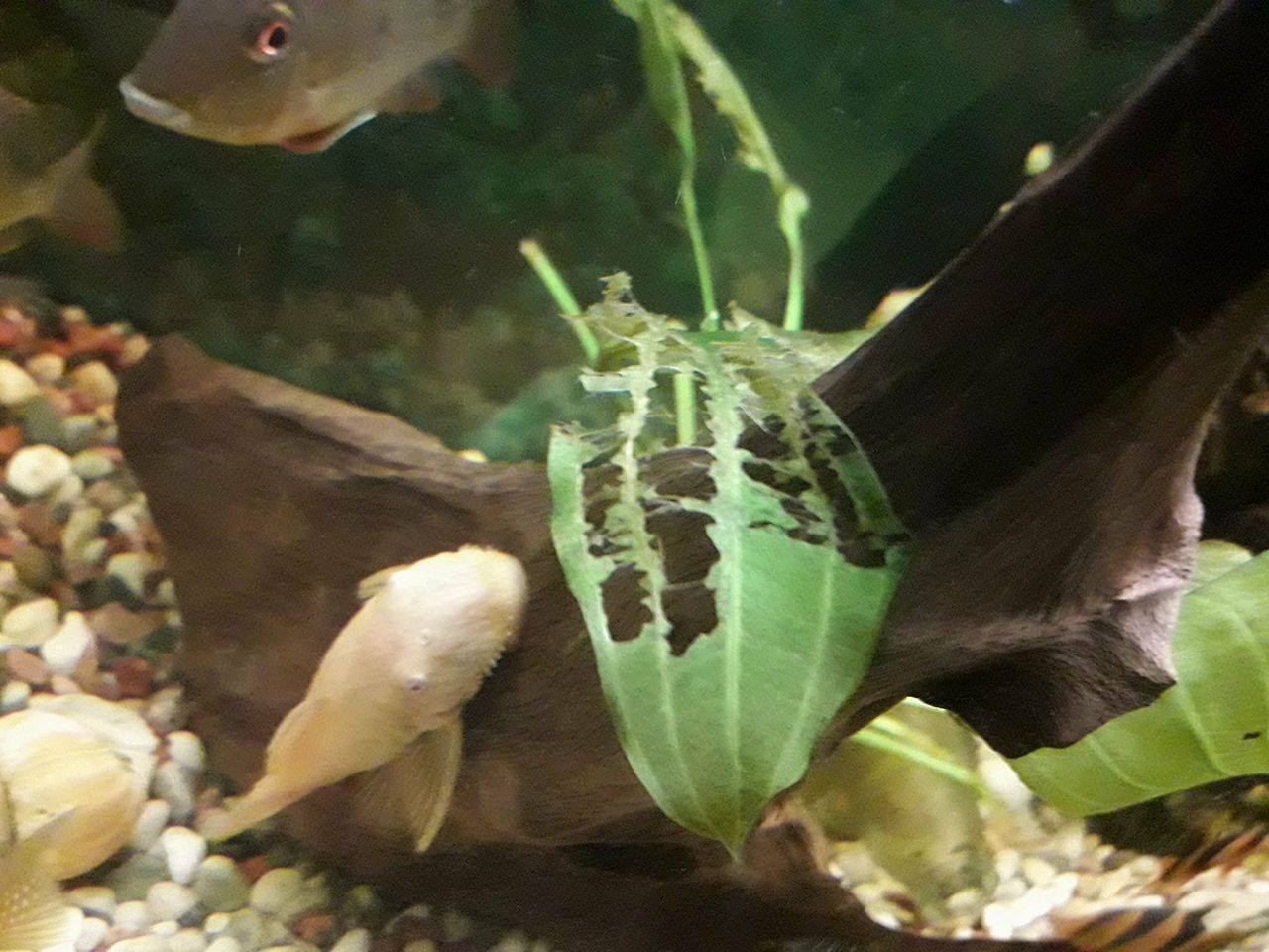 Относно другите въпроси: Температурата на водата е 24-25 градуса. Торил съм с калций и желязо, обаче не мисля, че това е проблема, защото както казах нови листа излизат постоянно, но след като излязат не оцеляват. Листата стават като паяжина, което аз си го обяснявам с липсата на светлина. Казаха ми също, че боциите и анциструса могат да ядат листата, но аз такова нещо не съм видял за година и половина, а и не изглеждат точно наядени. Имам още геофагуси (бразилски и суринамски), сребърни акули, сомове фосилис, синодонтис и клариас. Общо 20 рибки.