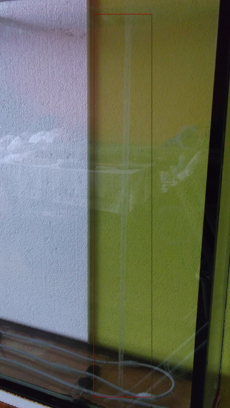 Принуден съм да продам аквариума. За целта обаче ще трябва да го изчистя. За съжаление ударих на камък. На първата снимка се виждат нещо като остатъци от варовик. Пробвах с ацетон (99% чист), с оцет, с спирт (мисля че Isopropyl alcohol се казва), с телче за кухня. Аквариума е държан пълен, само с вода, като от време на време му е доливана нова след като се изпари.