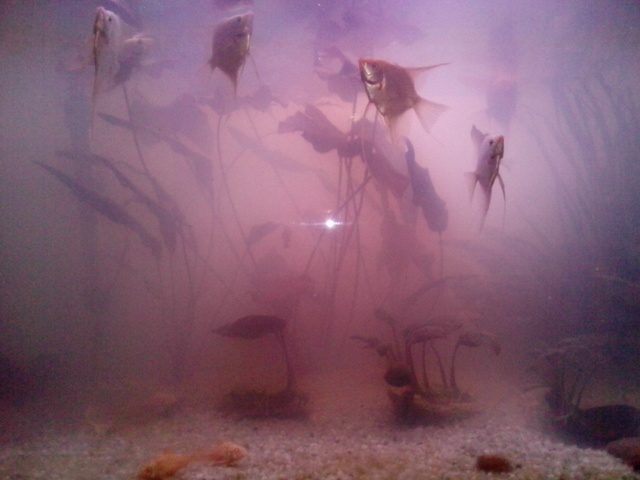 Населението на 140 л. аквариум е 8 Скаларии и 5 Коридораса албино.