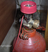 Май много задълбах?!  :-) Но ако нищо не губиш, преди следващата зарядка развий внимателно салниковата втулка /гайка/ и огледай този възел. Ако можеш, скицирай го, ще умуваме пак. Тази гайка би трябвало да бъде едновременно и капак на вентила, заради малките му габарити. Има и такива изпълнения. От снимките не виждам ясно, но май е точно такава конструкция.