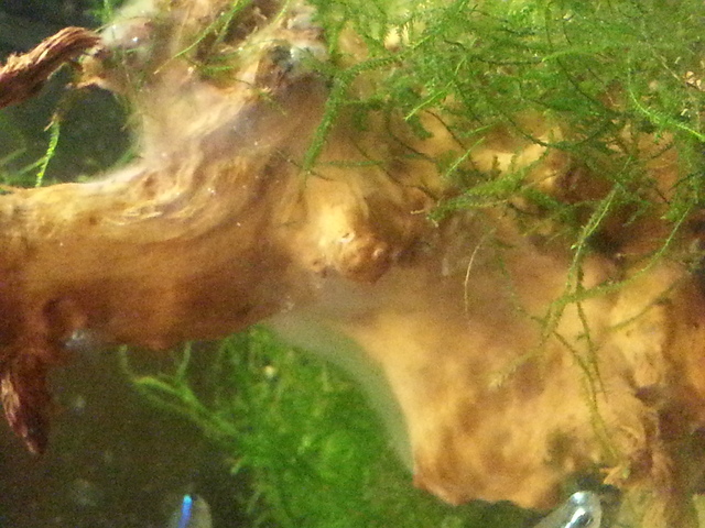 Според мен твърдението за лозовите корени не е вярно. Имал съм това нещо по лозови и по мангрови корени. В някои от случаите се е появявало само на конкретно място върху корена, а не върху целия! В последният аквариум, в който се появи, беше след един цял месец от поставянето на корена. Така, че въпреки заклеймяването на поста ми като спам, аз си държа на него, защото другото обяснение не ми се връзва, изхождайки от моите наблюдения!