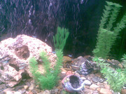 Малко информация да дам :). Сложих едноцветен фон преди две седмици, стана доста по-красиво. Приятелката купи няколко дрънкулки за дъното, първоначално гледах много скептично към тях, но сега им се кефя.