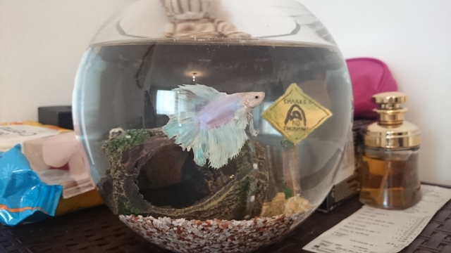 Здравейте, имам проблем с Бета. От няколко дни е унила, лежи на дъното на камъчетата и почти не плува. Имам я от няколко месеца,но преди беше жизнена плуваше си из аквариума а сега стои смо на дъното. От декорациите съм сложила само едно изкуствено растение и тя се заравя под него. Може ли някой да ми дде съвет какво да правя? :(