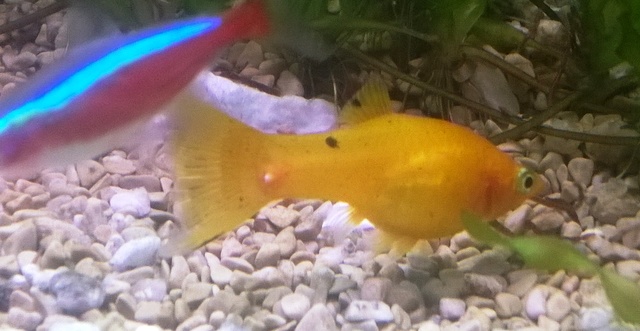 П. С.  и имам още един въпрос, имам обикновено ''лепящо'' сомче, нормално ли е да е агресивен? Която и рибка да се доближи до него, той скача и я гони, даже едно неонче мина над него и той скочи за да го удари с опашката.... качил съм снимка и на сомчето.