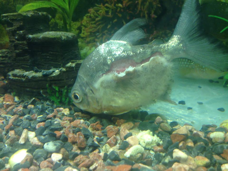 Между другото кажи на твоя приятел да извади ръбестите и остри предмети от аквариума! Това потънало корабче не ми харесва. Пираните са страхливи риби и при по-резки движения около аквариума започват да се блъскат в стените му.