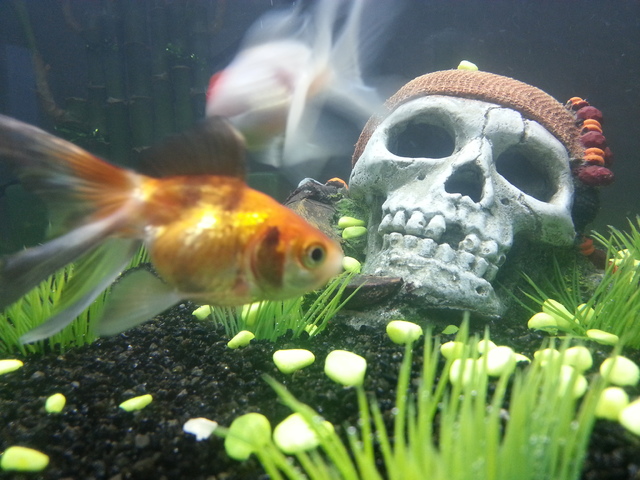 Аз пък имам обратния проблем. Моите златни риби имат черна украска, която започна да избледнява а аз искам да я запазя. Ще споделиш ли каква беше предишната храна, с която ги хранеше ? *dontknow*