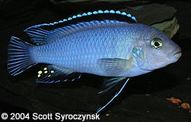 При другия вид (Pseudotropheus Socolofi) мъжките просто са по-сини с тъмно синьо по плавниците.