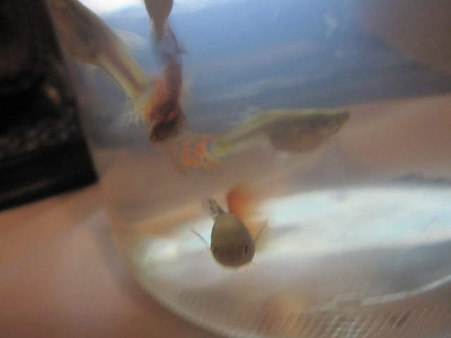 Ще ги пусна след малко в 22 литровия с двете даниота и двете плати.Имам и 2 малки гупи които продавачката без да иска е хванала