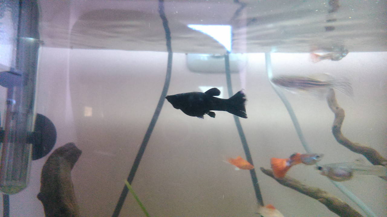 Приятели днес като се прибрах, нахраних рибките и забелязах нещо необичайно по едната молинезия  опашката и перките и прозират не-знам на какво се дължи този проблем. Моля по опитните да помагат  :-(.