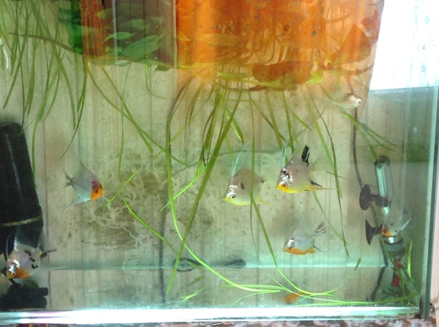 Здравейте. Имам тези скаларии от около 8 месеца. Засега само се бият, без да оформят двойки и да хвърлят хайвер, макар да се разпределят в ъглите на аквариума Някой има ли някакъв коментар по снимките.