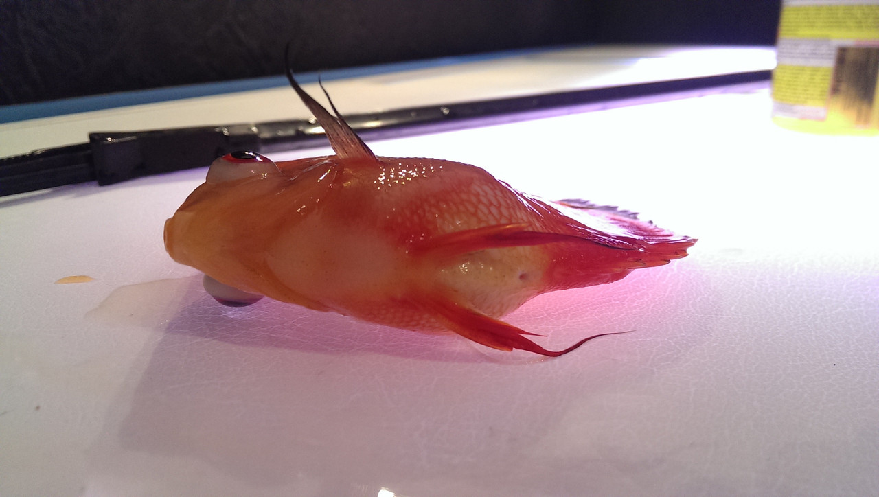 Това като го видя в аквариумите си и настръхвам. Същото се получава и при Скаларии. Райко беше го описал даже но ефект от лечение съм нямал. Като видя нещо такова и не бавя  рибата а направо е отстранявам от аквариума. Имаше нещо свързано и с храненето-еднообразна храна. Освен изпъкналите очи и едни дупчици по главата се появяват и после от тях едни власинки ..абе направо червейчета...