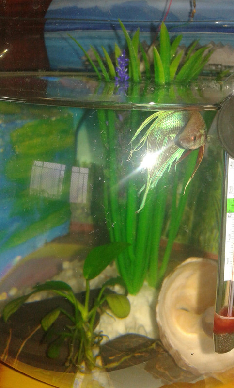 Здравейте! Преди около седмица си купих една мъжка бета. Живее в 10 литров кръгъл аквариум без други риби. Няма апетит. Пробвах да му давам суха храна и пинки(защото не можах да намеря тубифекс), прояви интерес само първият път към червея, но не го изяде. Не е много подвижен, първите дни стоеше при термометъра, а сега се крие по дъното. Моля Ви за съвет, защото съм начинаеща и се притеснявам, че не е ял от както го взех.
