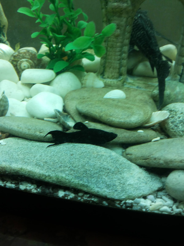 Здравейте акваристи, от седмица мъжката ми молинезия постоянно лежи на дъното като става само да яде,а като започне да плува тялото и се клати наляво/надясно и бързо пада на дъното.Аквариумът ми е 100 литра, в него има 1 мъжка и 1 женска молинезия 1 златна рибка(знам че трябва да се гледа само с други златни, но ми е подарък), 1 скалария, 1 женски и 2 мъжки хелера и 1- 20 сантиметров 13 годишен хипостомус.Според вас къде е проблема?