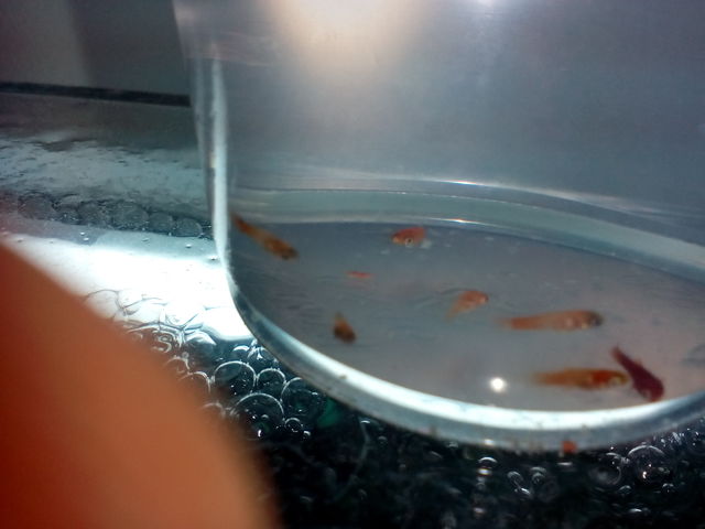 Преди 25 дена горе долу , но тя и тогава си имаше такъв голям корем. Но беше доста подвижна а сега корема и винаги е на дъното на аквариума. Междудругото преди седмица в аквариума се родиха рибки и за мен е мистерия от кои са. Освен тази велифера има един женски хелер които е вкъщи от 10-12 дни но според мен е слабичка и едма гупа женска. Сега ще снимам малките.