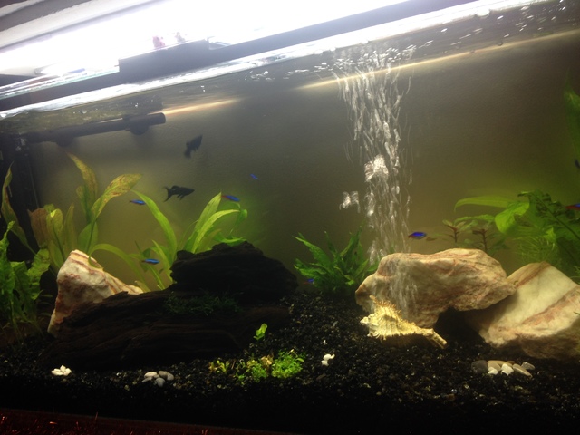 Малко предистория рибките съм се старал да ги добавям поетапно. Първо бяха анциструсите и коридаросите (едното коридаросче си замина в рамките ма седмица след добавянето). Нонките и молинезиите ги добавих 2 дни след сомчетата (при добавянето едната неонка най-малката не оцеля) Микроразборите ги добавих преди около 2 седмици и половина (още при добавянето пак най малката си замина :( )