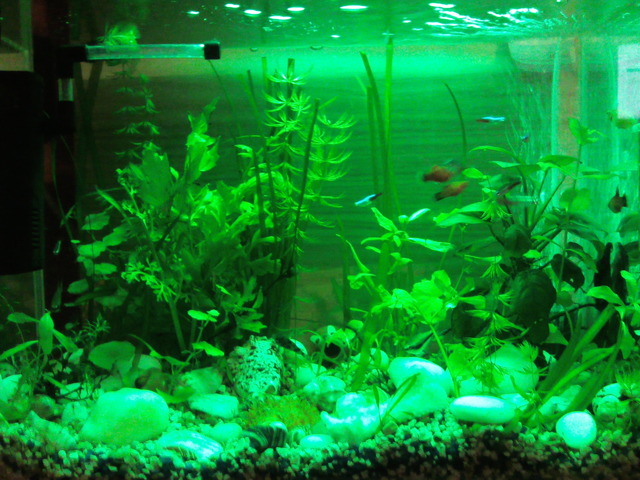 Здравейте  :-) Стартирах аквариумът си преди 4 месеца и благодарение на Вас и форума като цяло всичко си вървеше чудесно с рибките до вчера....  *SORRY* Аквариумът ми е 60 л добре е залесен, но не зная имената на растенията (около 30 % без плуващи)  с вътрешен филтър , машинка за въздух, нагревател и лампа. Имам 3-4 см грунд и камъчета с големина 2-3 см. Не мога да кажа какви са марките на машинките понеже съм доста начинаеща, но ако е важно ще погледна точно на кутийките какво пише... Храня ги със СЕРА люспи и гранули /редувам ги/ веднъж дневно - 1 щипка, изяждат я за около 2 мин. Тестовете показаха че всички показатели са идеални. Температурата на водата е 25 градуса. Сменям около 10 л от водата със сифон 1 път седмично със престояла чешмяна вода. 1 път седмично слагам тор за растенията - на сера /капки/ и витамини за рибките - тетра витал. Начинаеща съм така че искрено се извинявам че пиша така хаотично. В аквариума си имам 9 неона, 2 САЕ, 1 златна молинезия, 4 плата, 1 бета 2  oбикновен aнциструс и охлювче. Та бетата си я купих преди 3 дни като спазих всички условия за темпериране и прочие. Забелязвам обаче, че или се крие в растенията или стои леко на една страна неподвижно до нагевателя на повърхността. Има и някакво странно петно / на снимката се вижда доста ясно /.  =-O На другите ми рибки нищо им няма и се притеснявам ако е болна да не се заразят и те. Никоя от другите рибки не закача и не тормози бетата. Не зная каква може да е причината и ако можете да ми дадете съвет ще съм ви безкрайно благодарна  *thanks