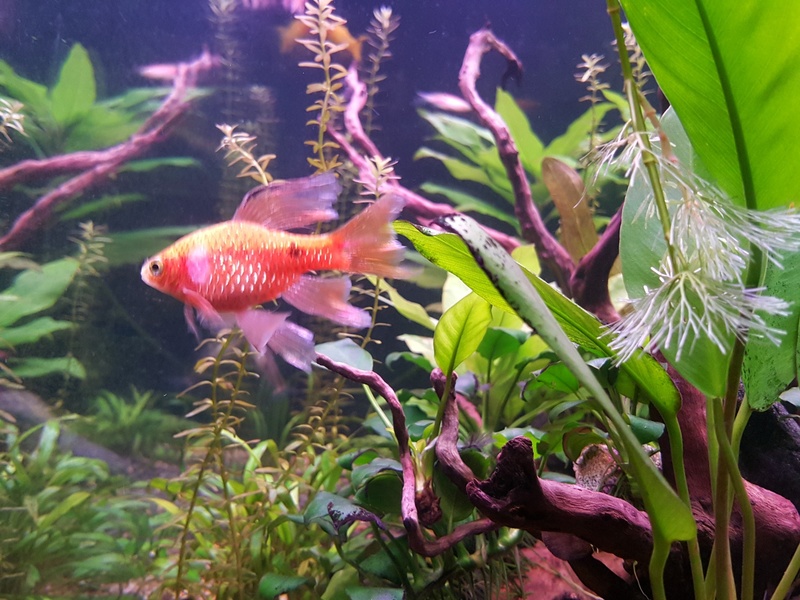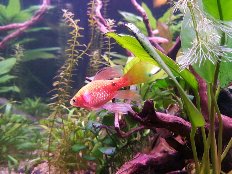 Тази червена ризбка на снимката (за съжаление не зам каква е) е от първите обитатели на аквариума