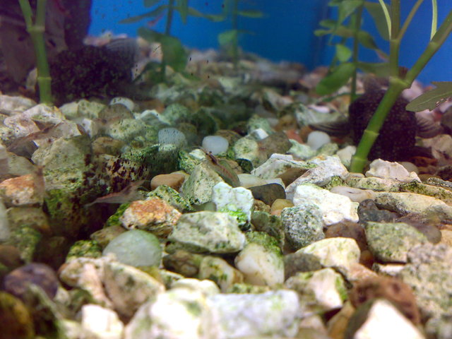 Кафевите и аз ги завъдих в скаридарника по камъните. Чистя, стържа с четка за зъби и пак се появяват. Не растат но упорито се появяват отново. Накрая махнах с ръка след като пробвах и с директно впръскване на Изи Карбо. Готини са мъхчетата на топчици.