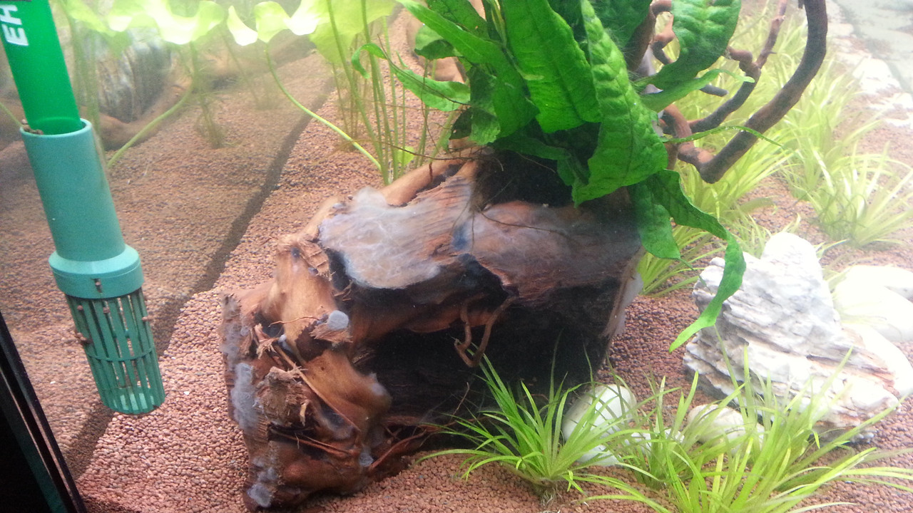 Появява се само, ако коренът не е изсъхнал достатъчно преди да се постави в аквариума.
