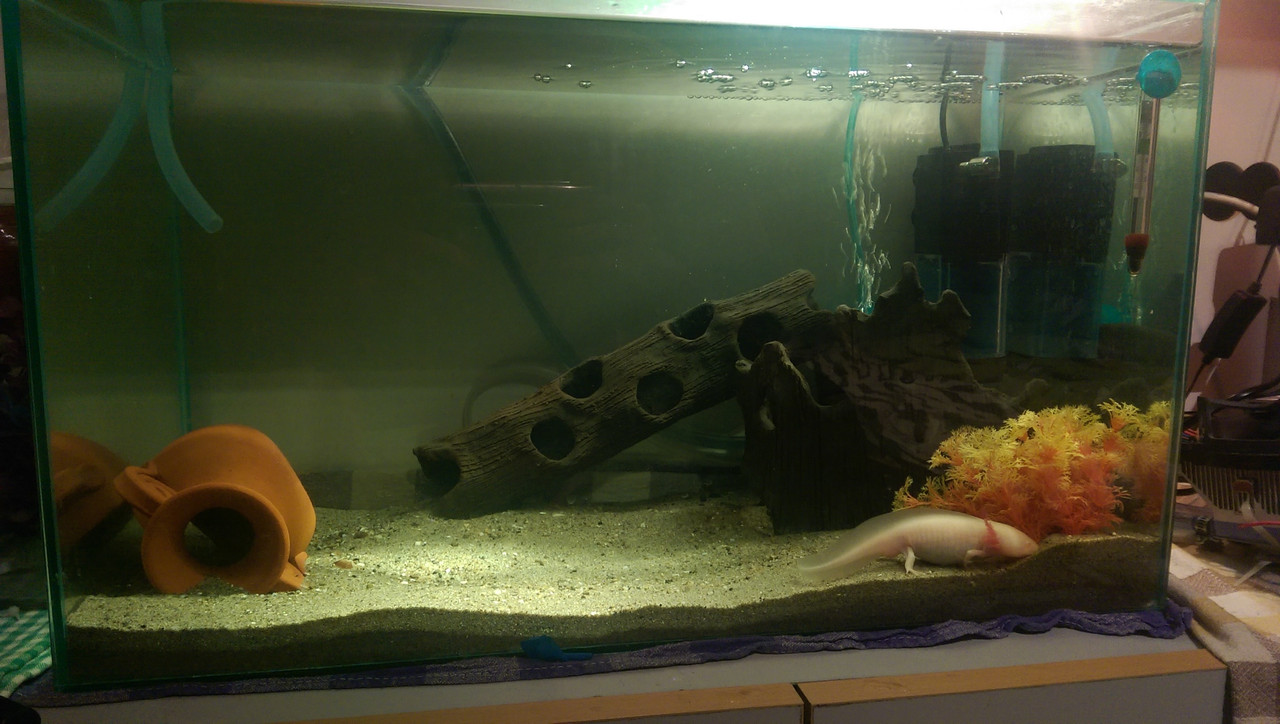 В него отглеждам един брой мексиканска амбистома.