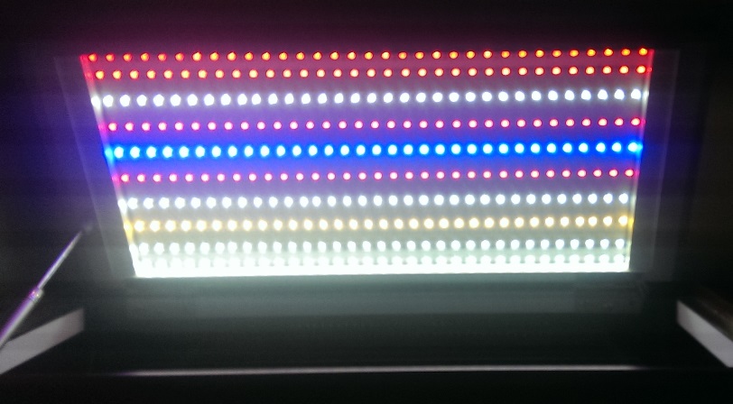 RGB лентите съм ги пуснал само в червено. Така видимо аквариума изглежда по-добре. Останалите ленти са на 80%