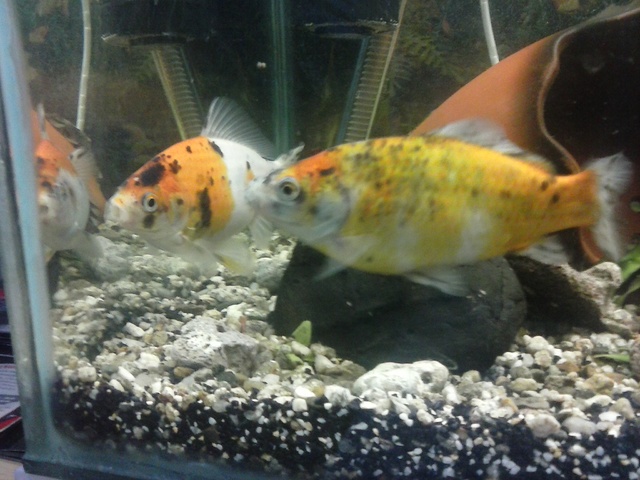 Аквариума не е от най-подходящите като размер за тези рибки.  Може и да съм пропуснал  описанието на литрите-обема на аквариума ти за което се извинявам но като съдя по снимките и дебелината на стъклото предполагам, че е скромен. Та с такъв брой риби ще трябва в пъти по-голям аквариум. Пишеш, че храниш с черен дроб...  И на човем му идва да се чуди и мае що за акули имаш..Чернодробна храна е друго нещо. Същата тази храна не е за препоръчване. Има доста добри храни и специализирани за златни рибки.