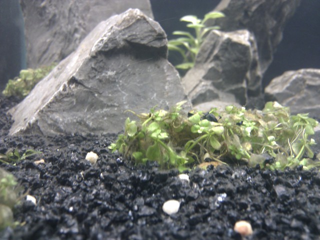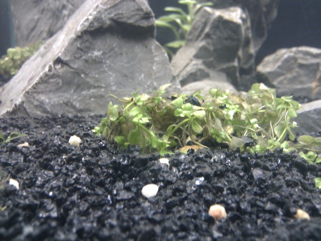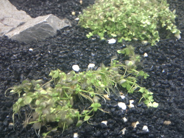 Голяма драма ей  *dontknow*..... Днес водата е доста по добре след като направих смяна на 90 % от нея и добавих 5 литра от стабилизиран аквариум в събота.   Обаче още от преди това забелязах че на полянковото растение част от листата му стават прозрачно-кафеникъви и се веят някакви кафяви влакна стигащи до 2 см. =-O  хем си израстват нови, хем се получава това.