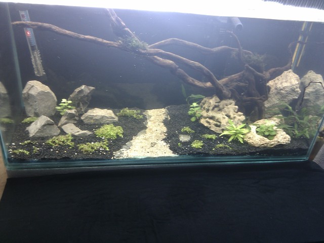 Сега, спираш да ториш и подаваш каквато и да е химия в аквариума!  Частичните смени на водата  продължават поне две недели. Осветлението на не повече от 6 до 6,5 часа Едва след това можеш да започваш добавяне на нещо което трудно върви. Имам предвид полянковите. Това е картина която се рисува и създава бавно. Не е като да вземеш четката и да намацаш цветовете с един замах.  Филтъра  не го пипаш поне месец време.