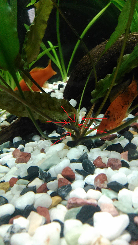 Приятели от скоро наблюдавам нещо по криптокрината, но проблемът е, че не знам какво е ? Някакво нишковидно водорасло, космовидно или не знам. Нямам представа как се казва и затова питам тук  :coffee: Възможно ли е това да е коренът и ? Един път го подкастрих, но без ефект.  :kreshtja: