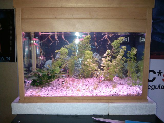 Смених осветлението, казаха ми че гро-лукс е хубаво осветление, но е само за растения и то повърхностни(предимно) сега смених осветлението и кафявото по растенията взе да изчезва, сменените лампи са обикновени пури 45см 15вата 6500 келвина,  560 лумена, ще сложа и снимка с предното и сегашното осветление:)