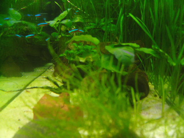 Всичко(почти) в този аквариум беше внесено от стария 60 литров,заедно с немалко черна брада. Постепенно тя изчезна,има само загадка от нея на един камък. Никакви водорасли не се наблюдават за сега. Незнам дали личи ,но в момента няма как да си мушна ръката в 1/3 от аквариума-толкова гъсто е обрасъл с валиснерия. А самата тя кипи постоянно. Мисля си че многото бързи растения и малкото риби са изсмукали някой елемент и затова "бухам" профито и макро. Но няма резултат. Значи мислите че с повечко риба ще станат нещата? Вода ми се струва натоварващо да сменявам по-често от веднъж седмично. :coffee: