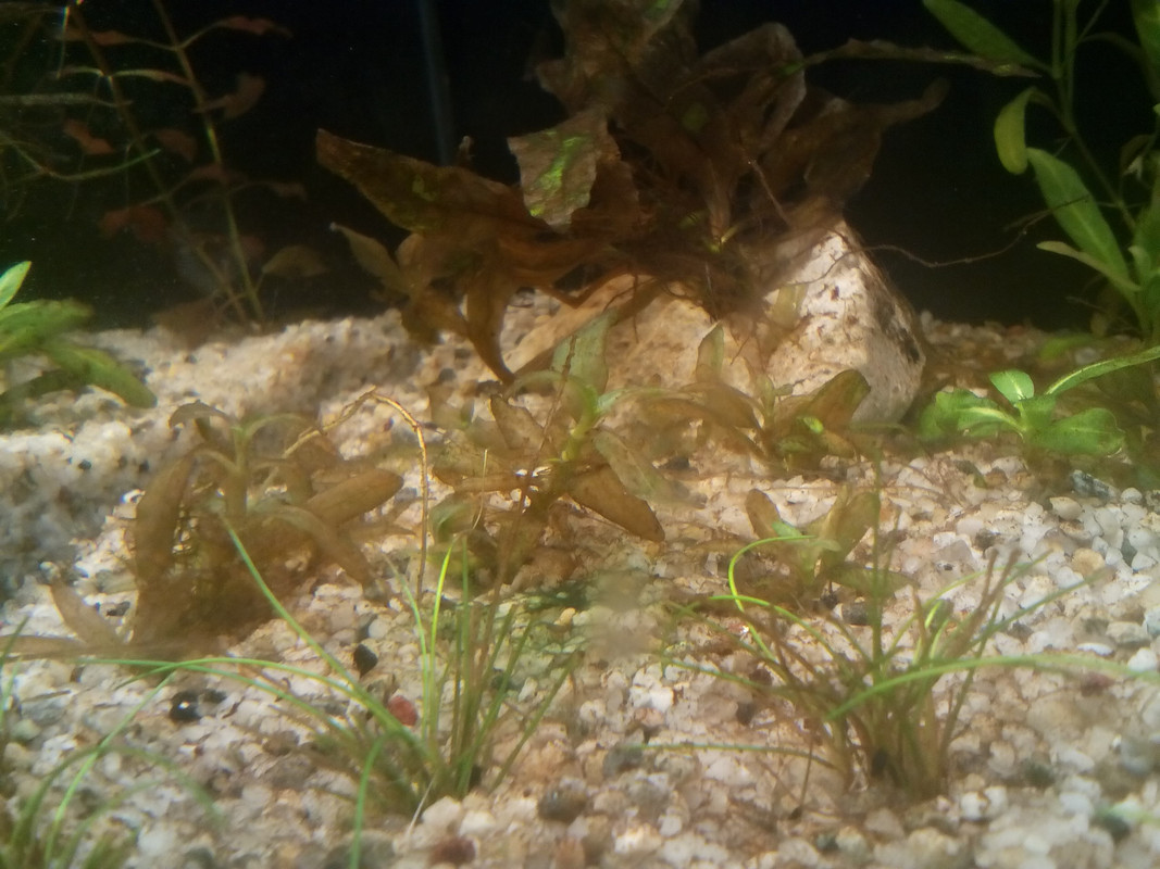 Стартирах преди десетина дни едно бетарниче, което е разделено на три  части. Почти венага обаче в две от частите се появи един проблем с растенията който имах преди година в др аквариум. растенията изгниват. Първо го забелязах на едно микрозорумче , после тръгна по стауроджина и сега забелязах признаци и по монте карлото.Слагам по малко тор профито + нитрати и фосфати , подавам Со2   , светя  с една пуричка  т5 14 вата , която като за литража( 24л)  мисля че е добре. Филтрация има в средната част на аквариума и  от там вода отива и в крайните части. Някой ако има идея как да овладея проблема ще съм много благодарен . прилагам снимка на засегнато растение.
