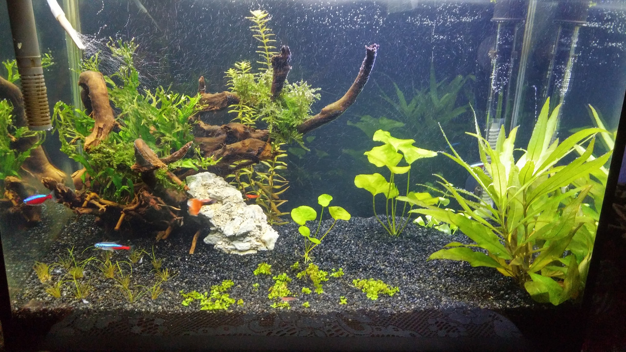 Ами осветлението съм си го правил аз с диодна лента, 4 метра от най-силно светещата. А този елеохарис вървеше супер добре, но след като го преместих не иска да пуска настрани, а преди полудяваше  :-D