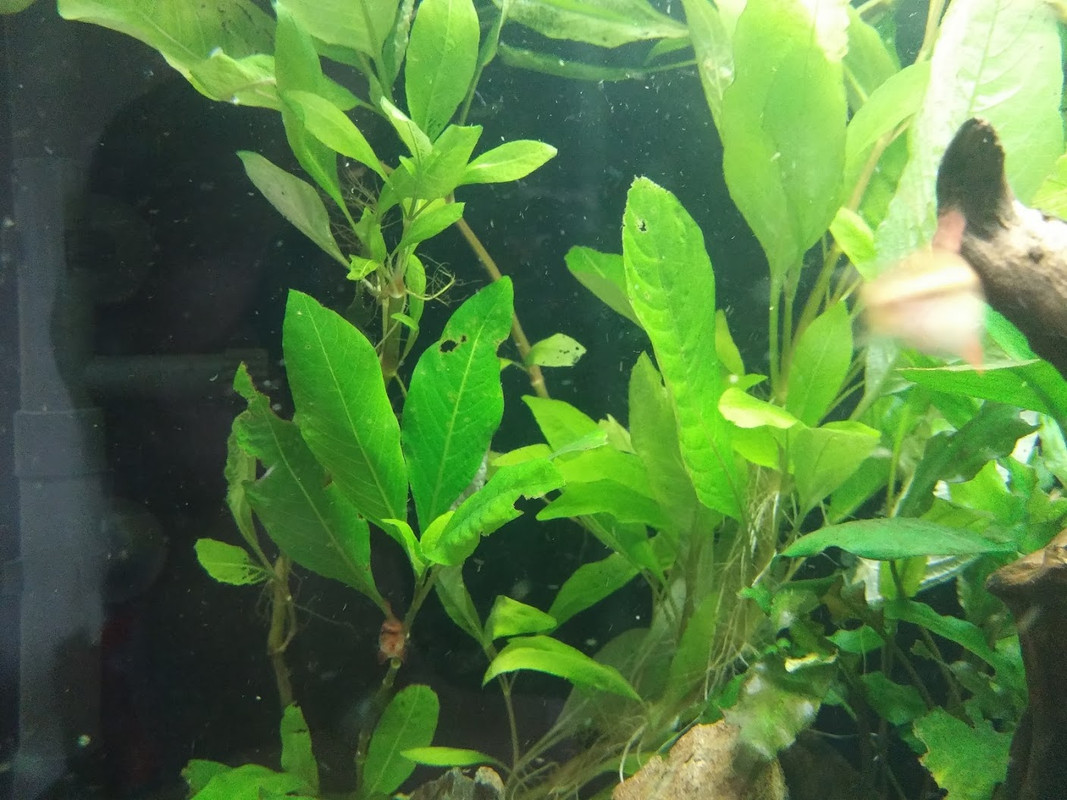 Здравейте колеги,от последния пост насам спрях СО2 то и всякакви торове,но според мен положението е същото. Другото което е се чудя е дали не ми е силно осветлението защото за около една седмица по стъклото се появяват водорасли,смиъл като го изстържа и пак след около седмица се появяват,или си е нормално това. Аквариума не е на пряка слънчева светлина,светя по 7 часа днесвно с 3 пури по 18 вата обикновени. За положението на анубиаса си мисля че може да му е прекално светлно,но на лимончето... не знам.Ето малко снимки: