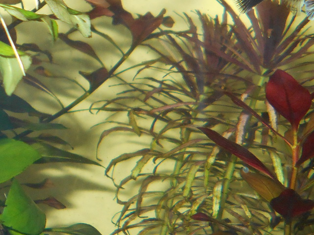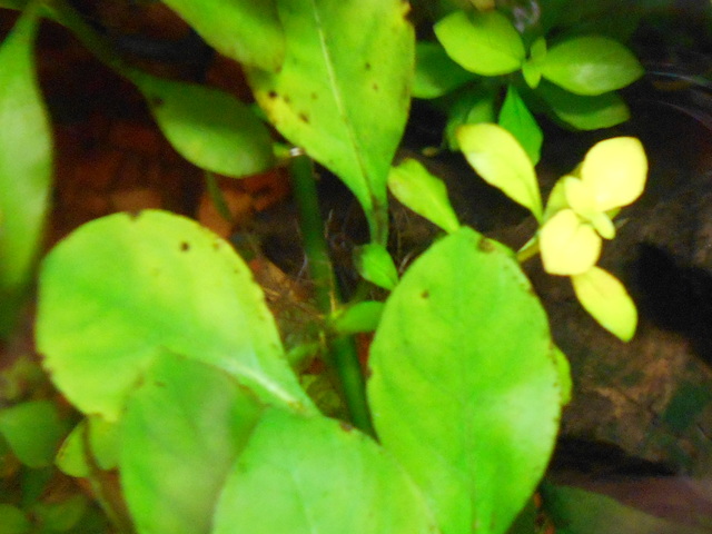Ще се радвам на някой съвет.За себе си подозирам предозиране на калий(но това свързано ли е с тези черни петна и ръбове?) Осветявам с 1хSera Tropical 15W с рефлектор  + 2х12W лампи за подводно осветление(тъй като нямам възможност да монтирам повече в капака)