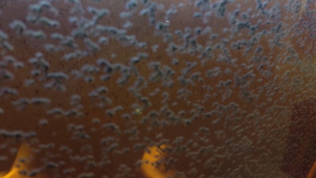 Както може да видите и от снимките - налице са налепи по аквариума ми. Неведнъж съм ги изтърквал с гъба(което ми костваше невероятно много търпение), но се появяват отново. Наред с това цвета на водота е червен, но налепите се появиха много преди цвета на водата да се промени. Аквариумът е почти 700л. Прикачвам и снимка с данните на филтъра.