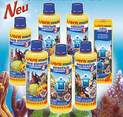 sera marin предлага на притежателите на морски аквариуми един пълен асортимент, при който общо седем съчетани помежду си продукта, гарантират оптимално снабдяване на коралите.