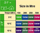 Ако желаете да поддържате температура по висока от 28ºС избрете нагревател с една стъпка по мощен от дадения в таблицата.