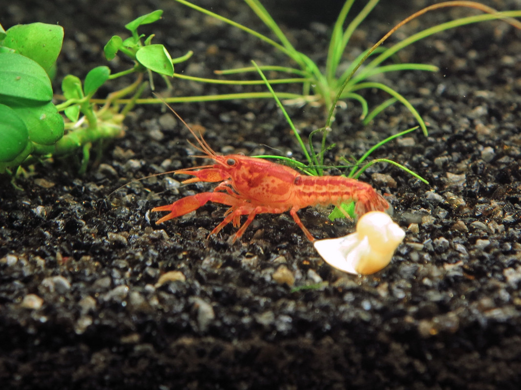 В момента имаме големи и работещи популации от Caridina dennerli и Neocaridina heteropoda var. Yellow fire Neon, както и добре развиваща се популация от чаровните рачета Cambarellus patzcuarensis var. Orange.