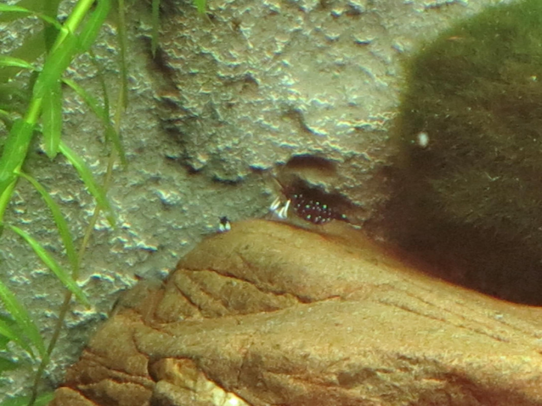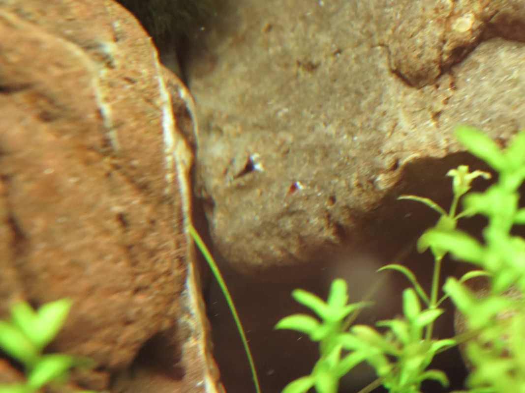 Преди три дни се появиха първите малки румънчета!  *YAHOO*  Смятам за резонно, ако оцелеят още десетина дни, да ги натурализираме и да си станат българчета :)  Засичам 4-5 мушморока, които са се заселили близо до предното стъкло, така че вероятно са десетина - едно люпило. А виждам и още 3-4 "носачки"... С две думи, засега всичко изглежда нормално, само трябва да възпра гадния си първосигнален инстинкт да ровя из аквариумите... :)
