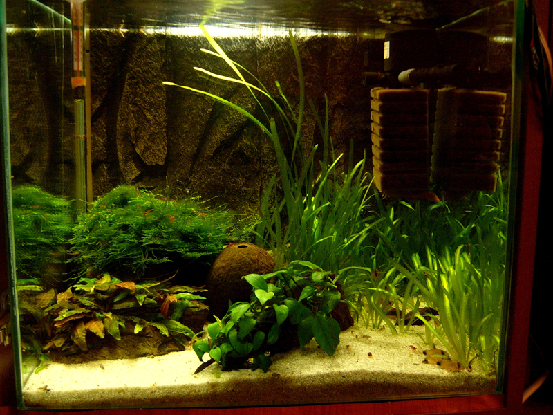Имам аквариум с коридораси аенеус, панди и джуджета + анциструси и скариди едва ли мога да им хвана бройката вече. Пълно е с новородени и се разхождат необезпокоявани пред коридорасите. Не съм виждал досега някоя да е изядена или някакъв опит от страна на коридорасите за агресия към скаридите. Храня ги и с артемии майки, но не си похапват скариди :) Една снимка преди месец, в момента са няколкостотин скаридките.