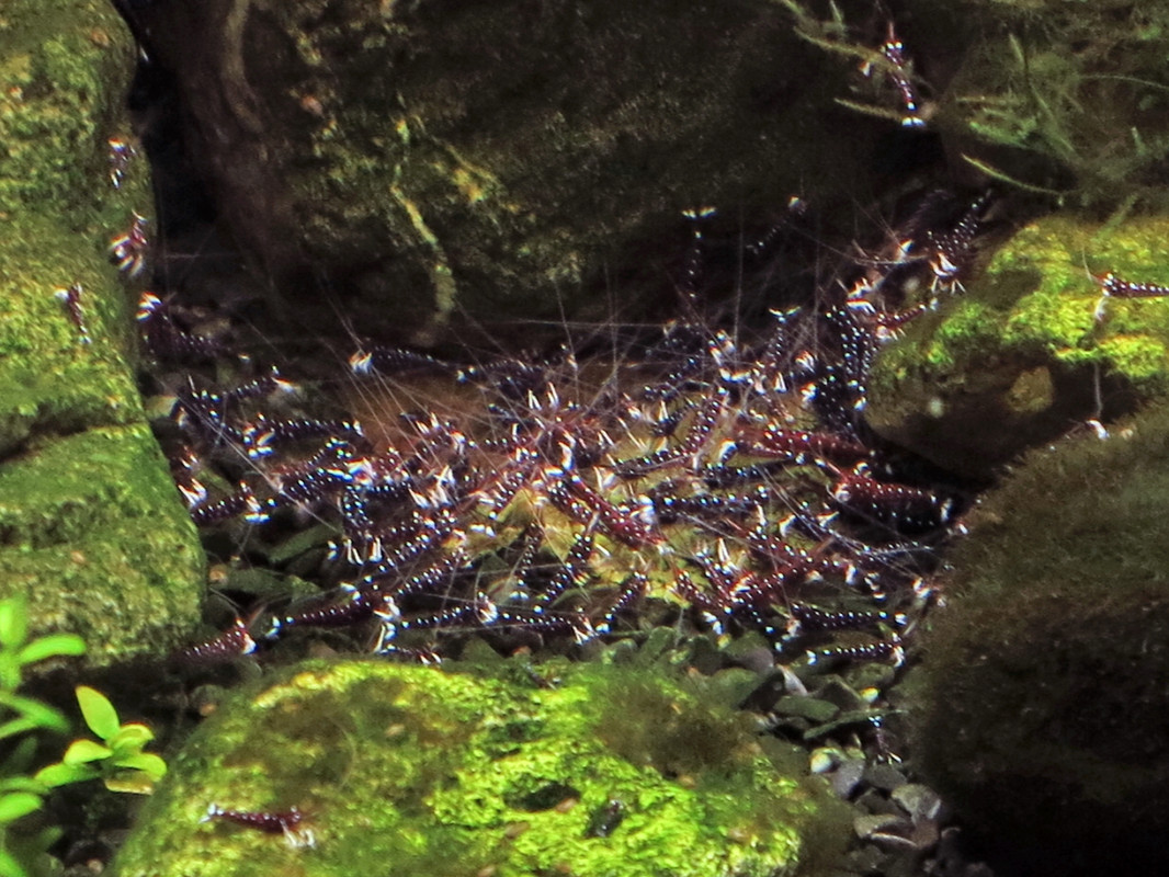 Относно храненето - пълни вегетарианци! Давам през ден-два по много малко храна за скариди, но честно казано, никак не са пристрастени - предпочитат да си скубят живи алги.