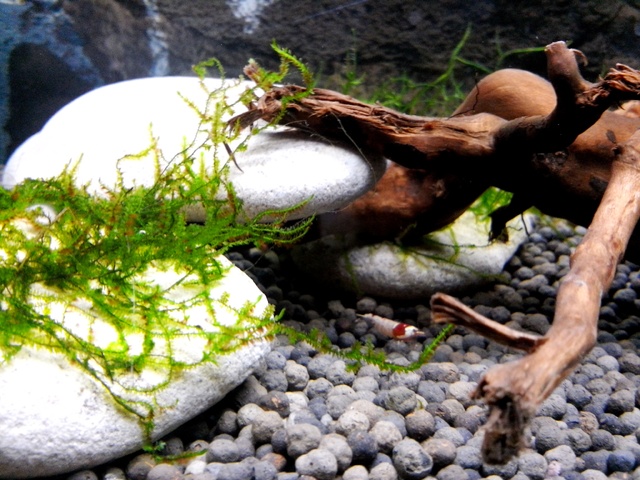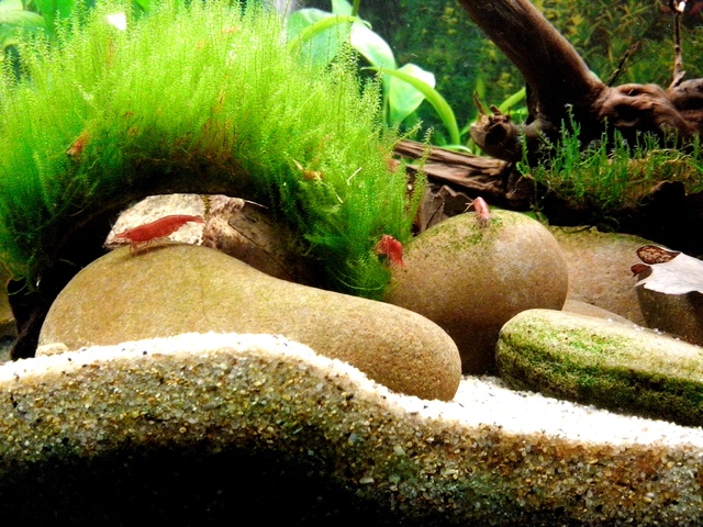 На първата снимка е скаридата Гого. Гого много обича да стой на дифузера и да се друса с со2, след което обикаля аквариума като ракета и няма спирка.